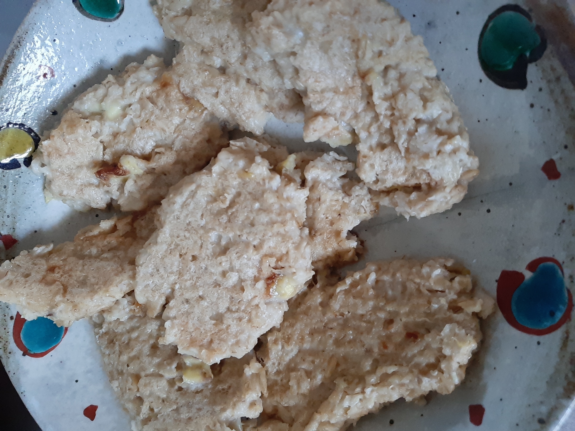 1y3m26d 離乳食完了期 きな粉バナナオートミールおやき 見習い管理栄養士のできごと